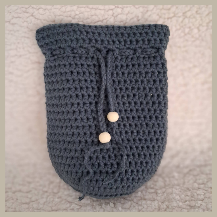 Het tasje is gehaakt van stevig katoen en gaat lang mee. Ideaal als duurzaam alternatief voor plastic zakjes of wegwerpverpakkingen.
